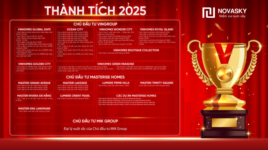 NOVASKY là đại lý phân phối cấp 1 của tập đoàn Vingroup – tập đoàn Masterise Homes, được vận hành bởi ban lãnh đạo nhiệt huyết, có tầm nhìn chiến lược.